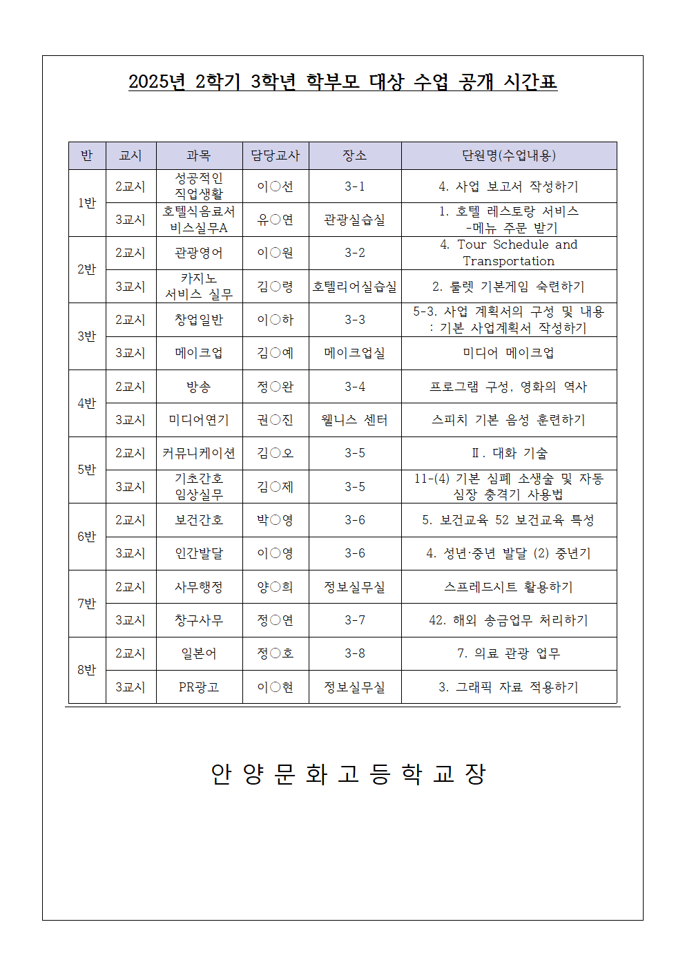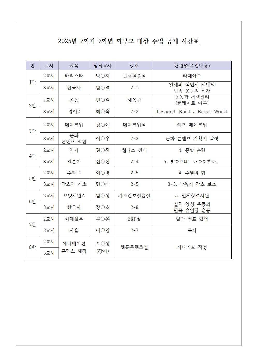 2025학년도 2학기 「학부모 대상 수업 공개의 날」 안내