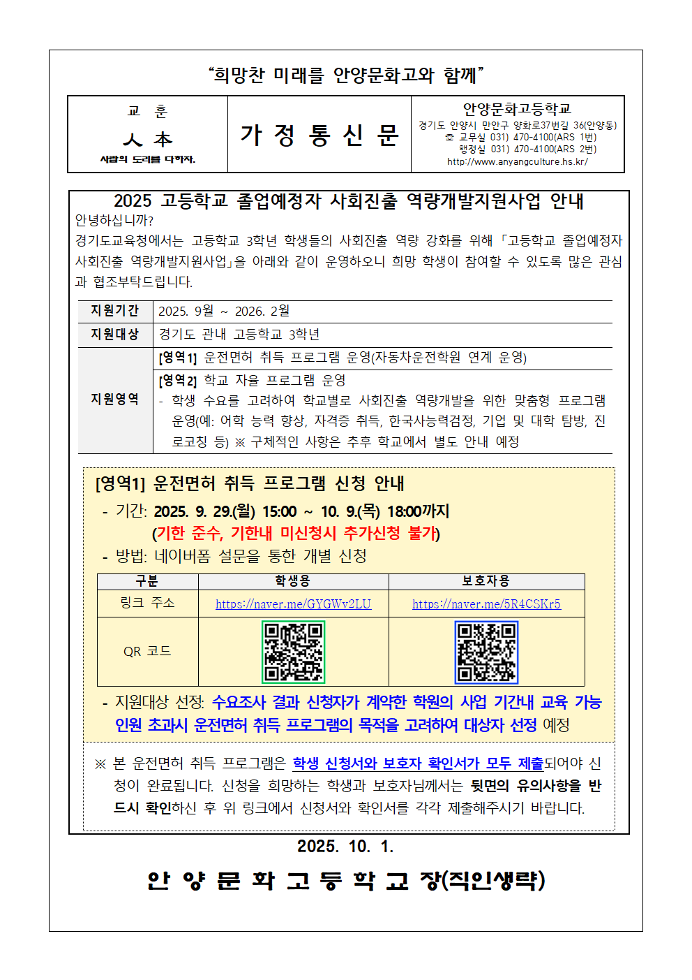 2025 고등학교 졸업예정자 사회진출 역량개발지원사업 안내