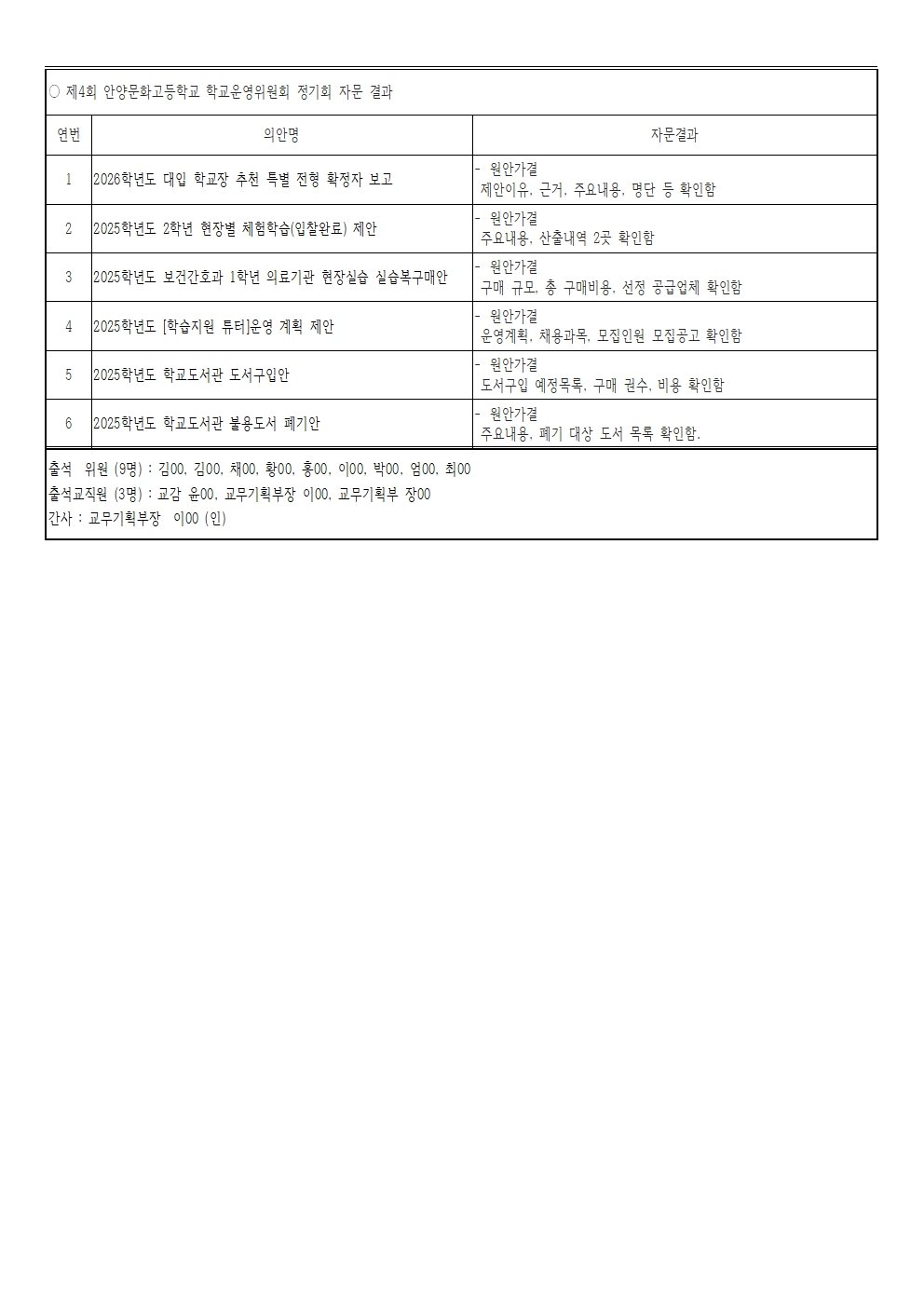 2025학년도 제4회 정기회 자문 결과
