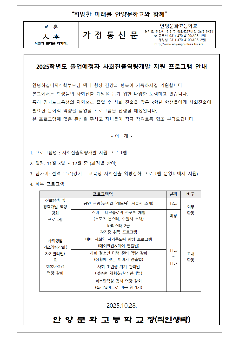 2025학년도 10월 보건소식지