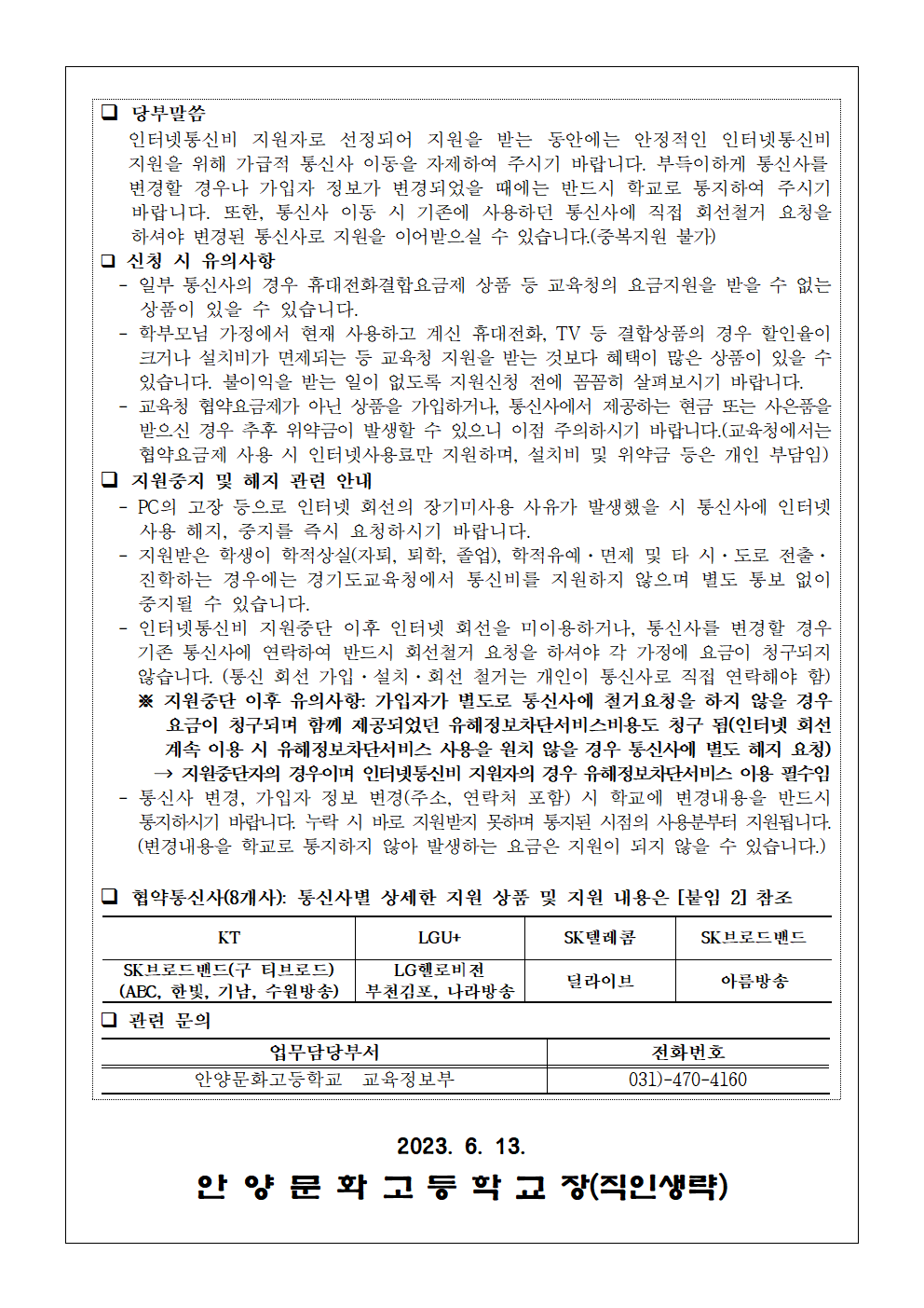 2023학년도 고교 취업연계 장려금 및 현장실습 지원금 통합신청 안내