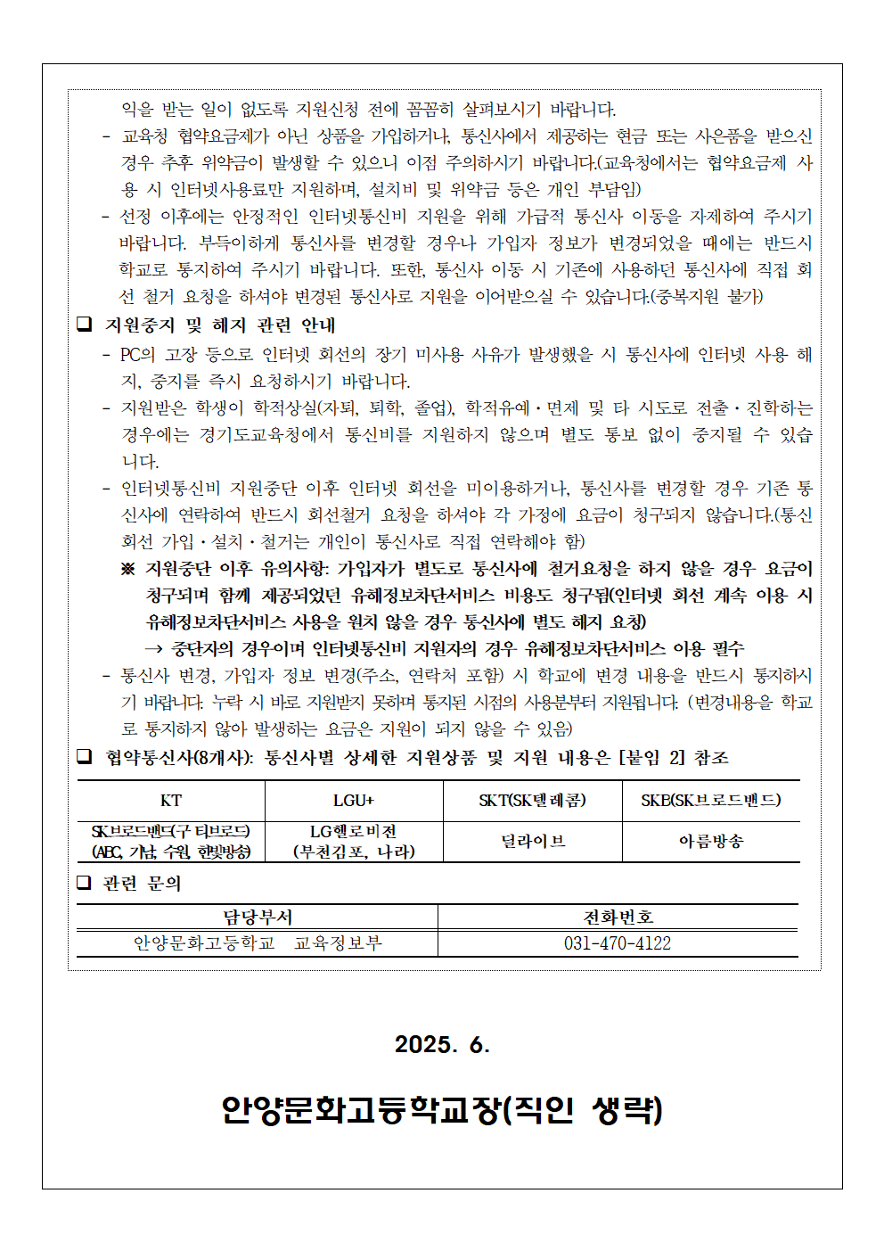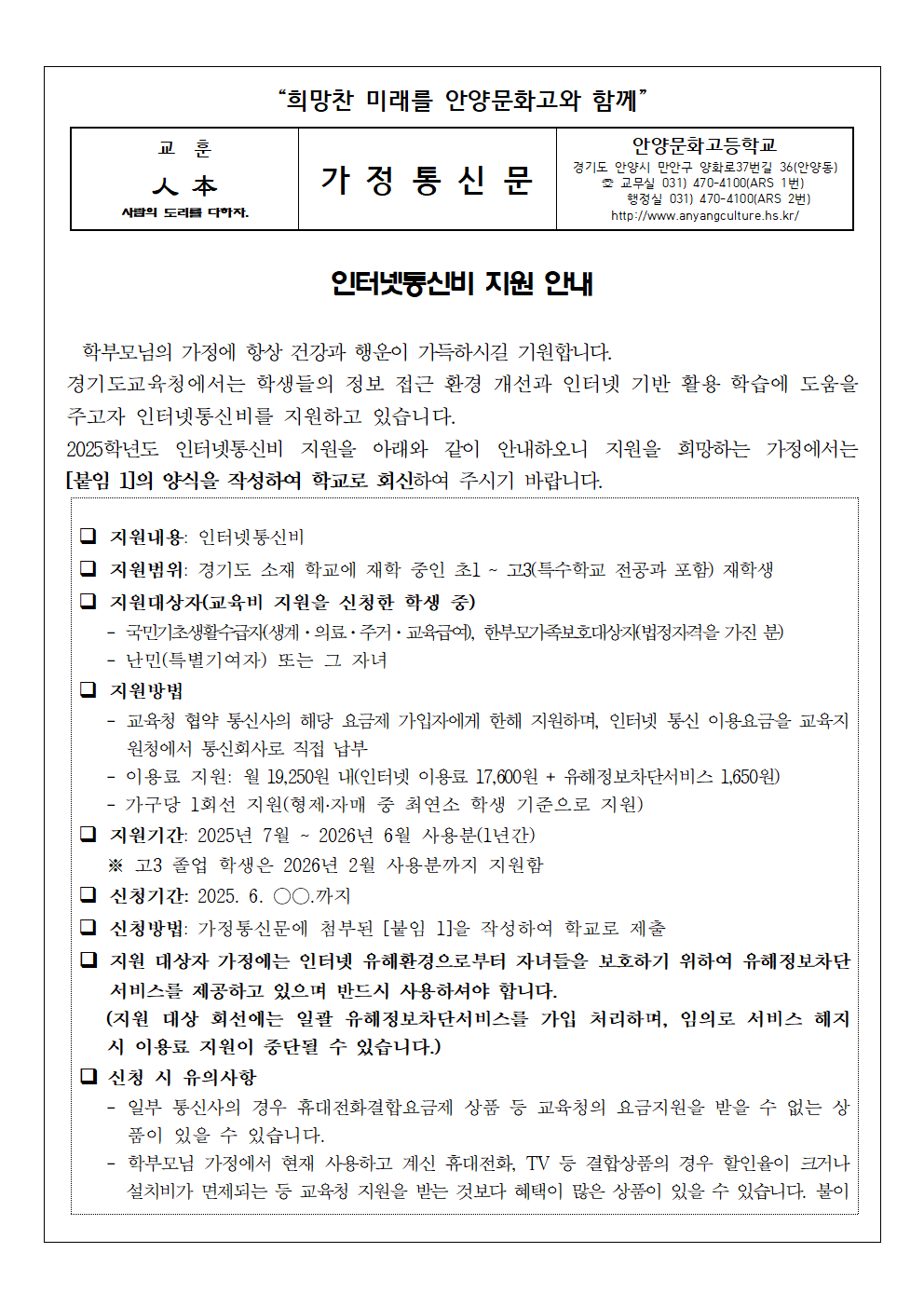2025학년도 2학기 통학버스 운임 인상 및 운영 안내